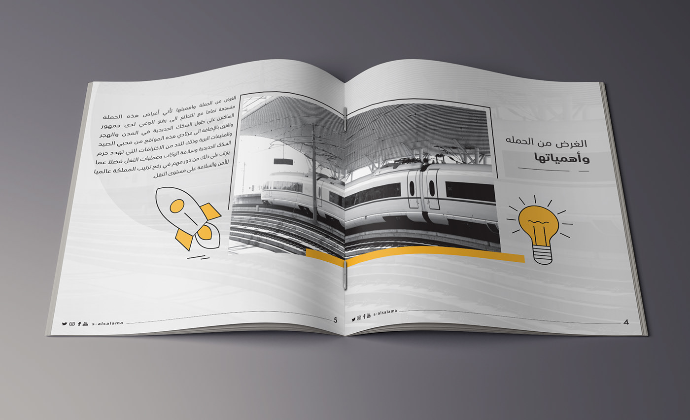 قمنا في هذا المشروع بتنفيذ تصميم ملف تعريفي احترافي لحملة “آمنة” التابعة للشركة السعودية للسكك الحديدية (سار)، يهدف إلى تعزيز الوعي بالسلامة ورفع مستوى الالتزام بإجراءات السلامة داخل شبكات السكك الحديدية، مع تقديم المعلومات بأسلوب واضح وجذاب يسهل فهمه لجميع فئات الجمهور.