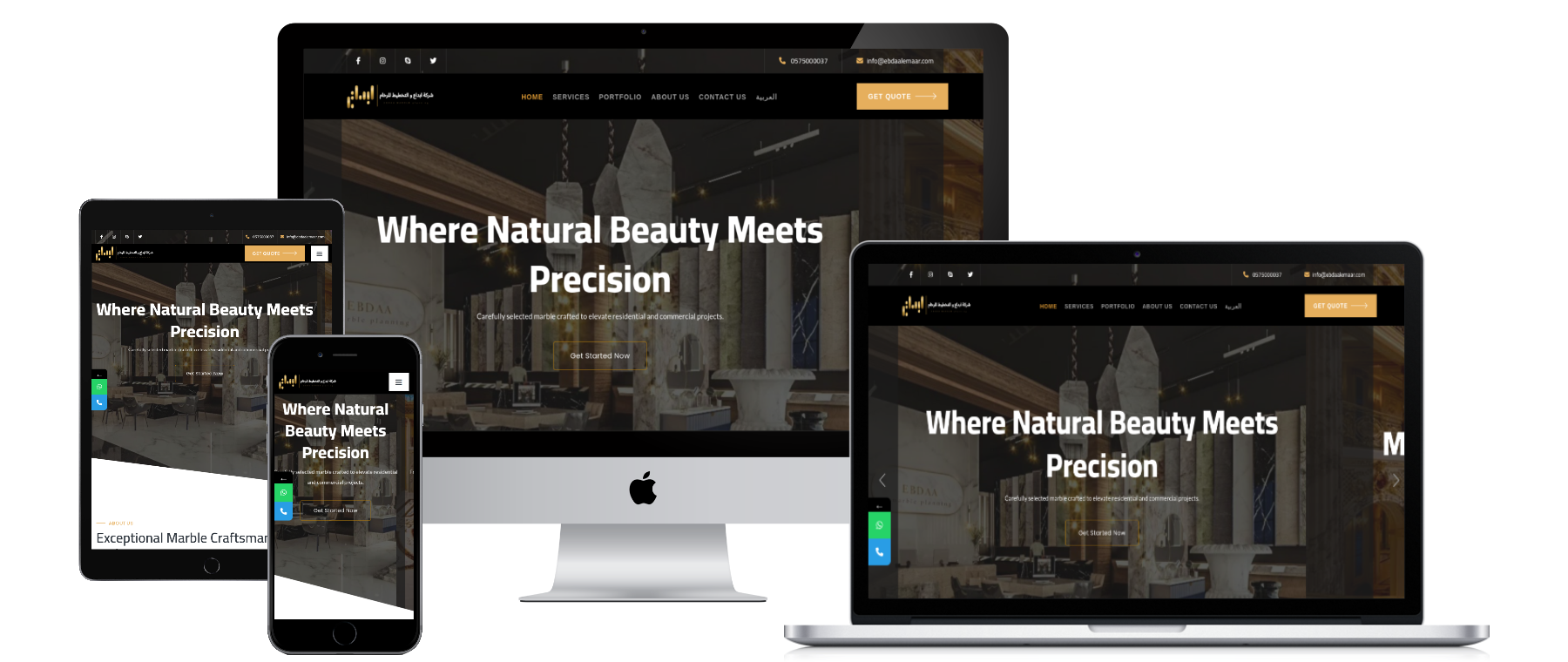 تم تصميم الموقع بأسلوب حديث يعكس جودة ومصداقية المصنع في صناعة الرخام، مع إبراز المنتجات والخدمات بشكل واضح ومنظم، مما يسهل على العملاء تصفح الخيارات المتاحة والوصول إلى المعلومات بسرعة واتخاذ قرار التواصل بثقة.
