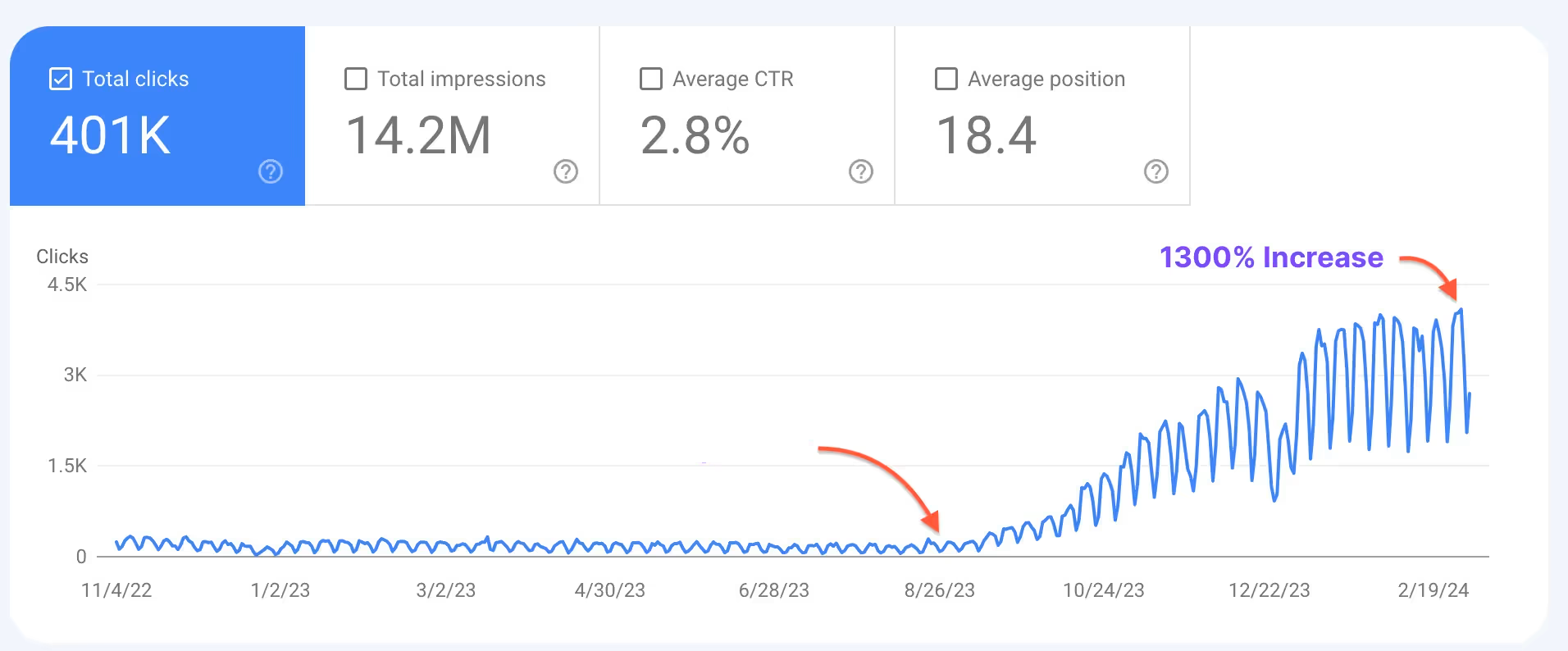 كان موقع منصة خدمات موارد بشرية جديدًا نسبيًا يعاني من قلة الزيارات العضوية وعدم وجود سلطة واضحة في محركات البحث، حيث كان المنافسة قوية والموارد محدودة. بعد التعاون مع اكسترا تك كشركة سيو في السعودية، تم تبني استراتيجية محتوى منظم يستخدم تكتلات موضوعية مع نشر مستمر عالي الجودة، مما أدى إلى زيادة الزيارات العضوية بمعدل 1300٪ في 7 أشهر وأصبح الموقع أحد اللاعبين الرئيسيين في فئته.