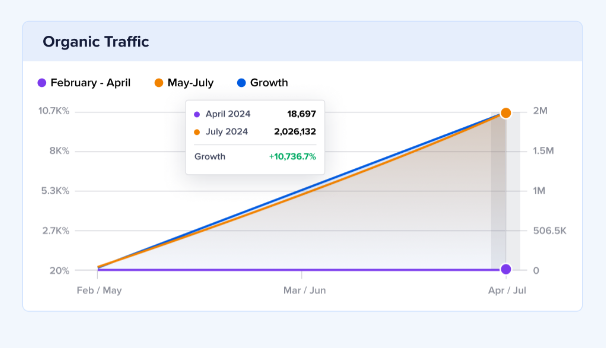 كان هذا الموقع الإلكتروني المتخصص في العقارات قبل التعاون مع شركة اكسترا تك يعاني من زيارات عضوية ضعيفة جدًا، حوالي 18.7 ألف زيارة شهرية فقط، مع اعتماد كبير على القنوات المدفوعة، ومحتوى محدود وقدرات قليلة على استهداف الباحثين في محركات البحث. بعد تنفيذ استراتيجية **تحسين محركات البحث مع أفضل شركة سيو في السعودية، تحوّل الموقع بشكل جذري: فقد تم توسيع المحتوى بشكل كبير، تحسين هيكلة الموقع، وتعزيز ظهوره في نتائح بحث جوجل بما يتناسب مع نية الباحثين، مما أدى إلى نمو هائل في الزيارات العضوية لـ حوالي 2 مليون زيارة شهريًا خلال ثلاثة أشهر فقط، وتم ضم آلاف الصفحات الجديدة التي تستهدف كلمات بحثية متعلقة بالعقارات وأسئلة المستخدمين بشكل احترافي.